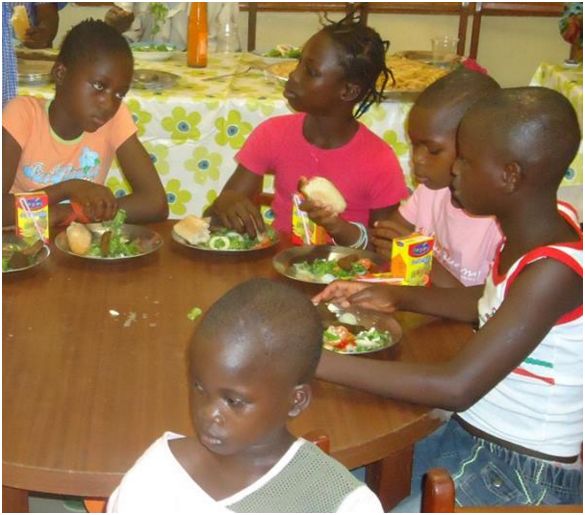 Many orphanages have nurseries, special rooms for infants aged zero to twelve months. Maybe three or four caregivers sit around ministering to them, gradually discerning clues to the children’s unfolding personalities and idiosyncracies, information which may someday become part of a two or three sentence psychological description in a prospective adoption dossier. After the child’s first birthday it is gradually introduced into rest of the facility. Many can walk by this time, but they may elect mostly to sit on the floor at some secure vantage spot and observe the confusing, perhaps terrifying cacophony of activity whirring by. Meals are taken by hand, fingers at first, in simple bowls; the staple meal is bland porridge made from a local root vegetable related to yuccas, called tou. As infants get older they may have a carrot soup or spiced tomato puree to enliven their tou. On special occasions there are treats.