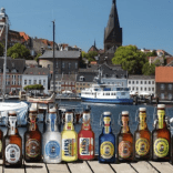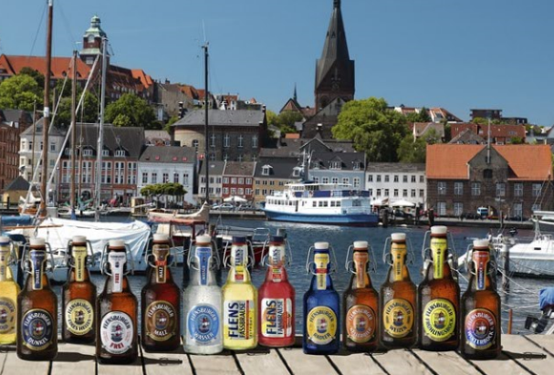 [ St. Marien Harbor in Flensburg ; Hugo Eckener was a famous Flensburger known as the pioneering father of the zeppelin — his star fell during the pre-war years due to his anti-Nazi stance ; One of the town’s several market squares ; The Flensburg brewery has been operating since 1888 ]