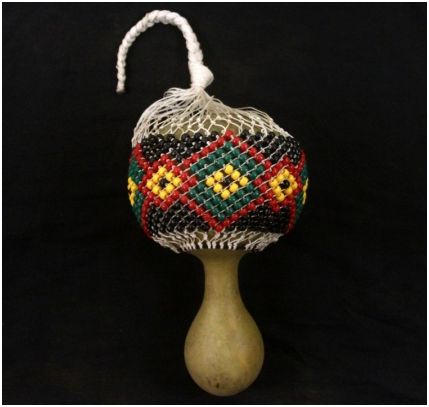 Whereas the djembe is basic and straightforward, the stringed kora, or n’goni depending on dialect, is intricate and delicate sounding. Although the volume is loud due to the enormous round calabash forming the sonic heart of the instrument, it is capable of extremely agile rapid melodic phrases. When you first hold a kora it feels inefficiently designed; there seems to be no practical way to access the strings for plucking while supporting the instrument. There are 21 of them ranging vertically outward from the instrument, instead of horizontally along the face of it (as with a guitar), in two parallel groups. They are usually nylon fishing line nowadays, or wound metal harp strings, but traditionally were formed of dried antelope tendons. Two sturdy rods protrude from the base and understanding them solves the mystery: one grips them in each hand using the the three final fingers of each hand. This steadies the kora erect in front of the player, but facing outwards towards the viewer, while freeing up his two thumbs and index fingers to play the strings. There is no fretting; each string produces one tone but tuning can be changed by sliding leather straps between each string either up or down the long neck. The alternating pitch sequence of the strings, right, left, right, left, permits rapid scales. One of the things which most fascinate about ethnic instruments around the world is how they solve design problems as sculptures in space in such novel and characteristic ways. The kora uniquely and beautifully exemplifies this. It sounds a bit like a spastic ringing harp.