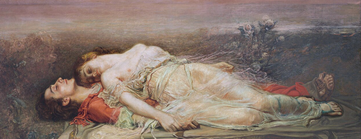 [ Image 2: Detail from 1910 painting by Spaniard Rogelio de Egusquiza titled Tristan and Isolde. ]