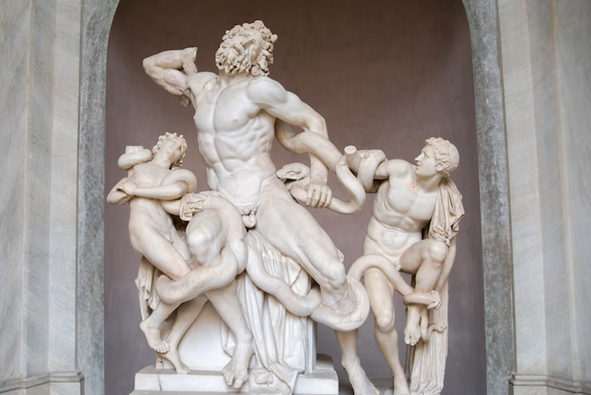 Circa 1200 BC: The serpents represent the individualized cunning inherent in the coming epoch of the Greeks… Which the apex culture of the preceding era, the Trojans, have no means to contend with… And which only the approaching event of Golgotha carries the potential to redeem, when later men become ensnared in their ensuing entangled cleverness…