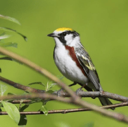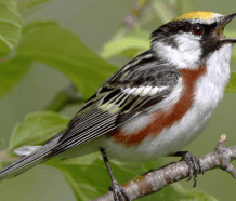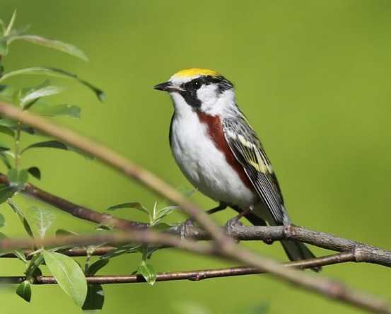 The first two photos are snaps of the infrequently seen (for me) Chestnut-Sided Warbler. The image on the right is an American Redstart, somewhat more common (for me). Click to enlarge. Both are North American warblers and both paid me a visit on my morning walk today.